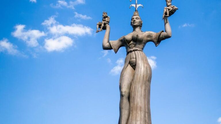 Die Hafenfigur Imperia in Konstanz ist eine beeindruckende Skulptur: 18 Tonnen schwer, zehn Meter hoch und ganz aus Beton gegossen zeigt sie das Abbild einer üppigen Kurtisane. Aufgestellt wurde die Statue durch einen Streich ihres Schaffers Peter Lenk.