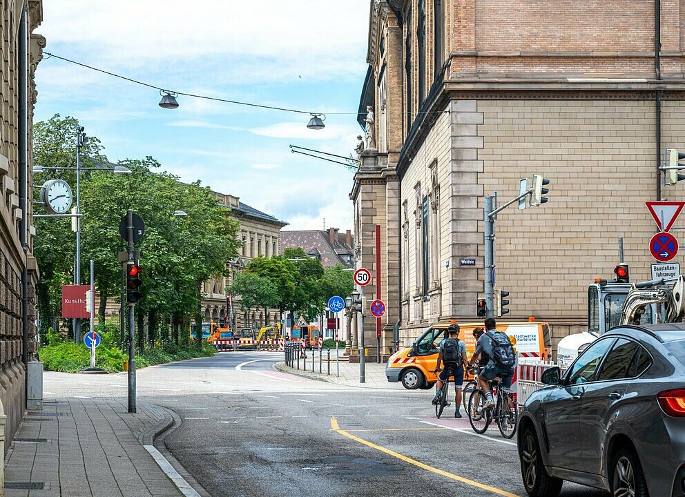 Die Sanierungsarbeiten der Kunsthalle nehmen Teile des Straßenraums in Anspruch. Ab Montag, 15. Juli 2024, gilt daher für die nächsten rund fünf Jahre eine geänderte Verkehrsführung, heißt es in einer Pressemeldung der Stadt Karlsruhe.