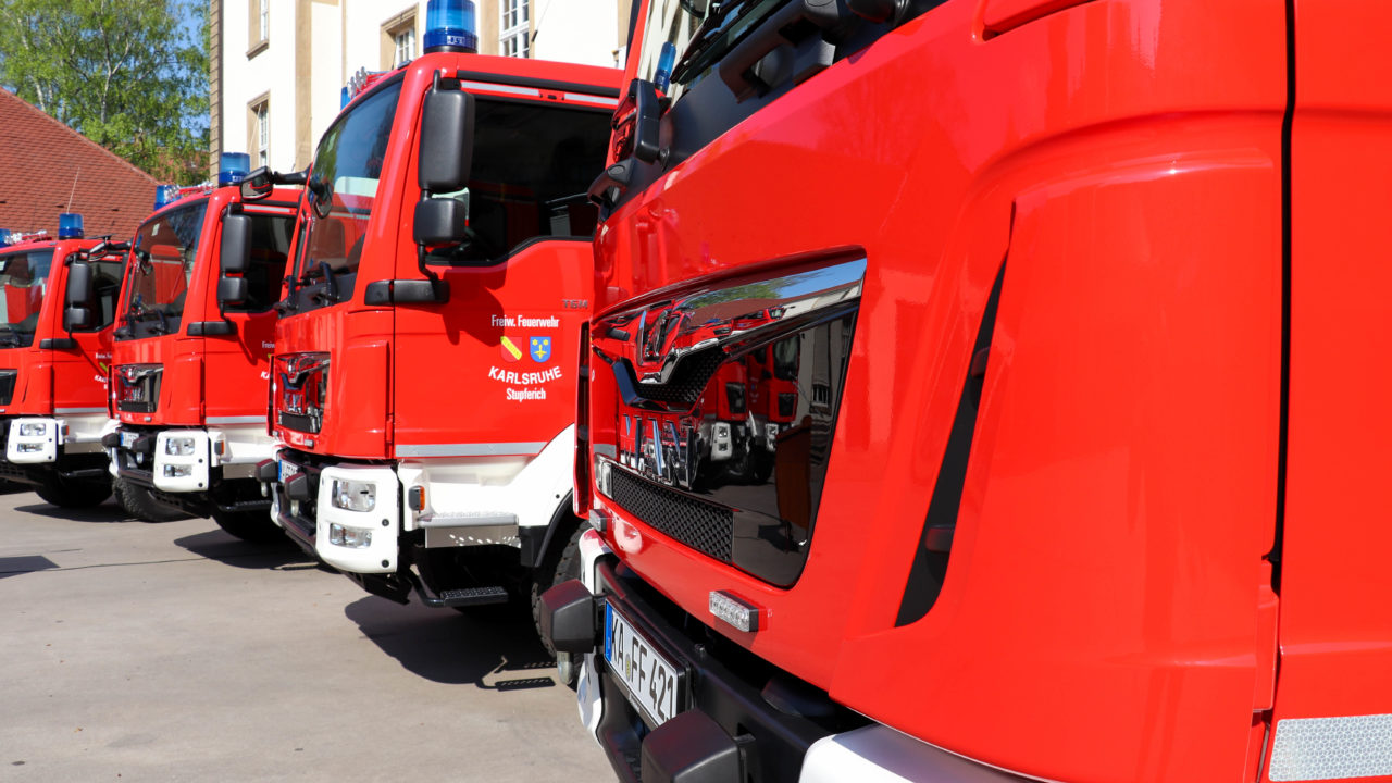 In Karlsruhe wurden neue Feuerwehrfahrzeuge an fünf Abteilungen übergeben. Sie ersetzen zum großen Teil ältere Fahrzeuge, die ausgemustert werden müssen. Die neuen Fahrzeuge können jeweils 3.000 Liter Wasser transportieren, haben Allradantrieb und sind so bestens für Brände in schlecht erreichbaren Bereichen. Damit wird die Feuerwehr Karlsruhe weiter in ihrer Schlagkraft gestärkt.