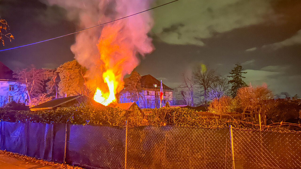 Brennende Gartenhütten in Karlsruher Kleingartenanlage