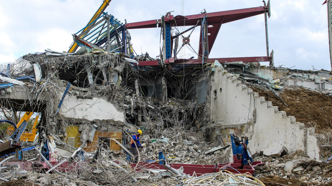 Mitte April 2021, fiel der letzte Träger der Hauttribüne im Wildparkstadion.