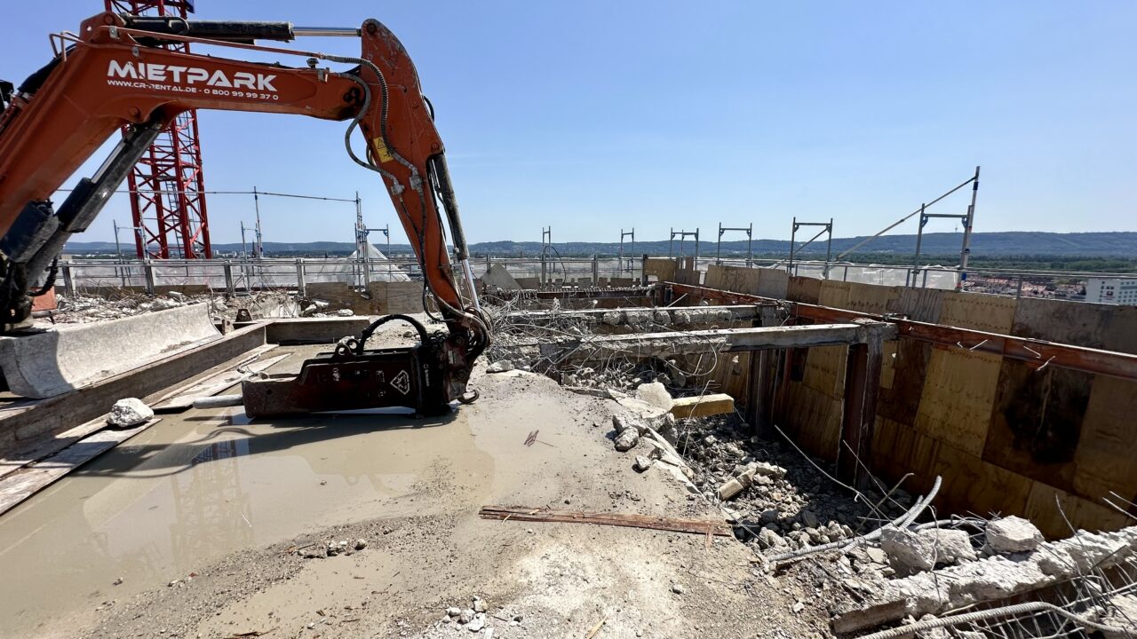 Ein Einblick mit Ausblick in die Abrissarbeiten des Karlsruher Landratsamts