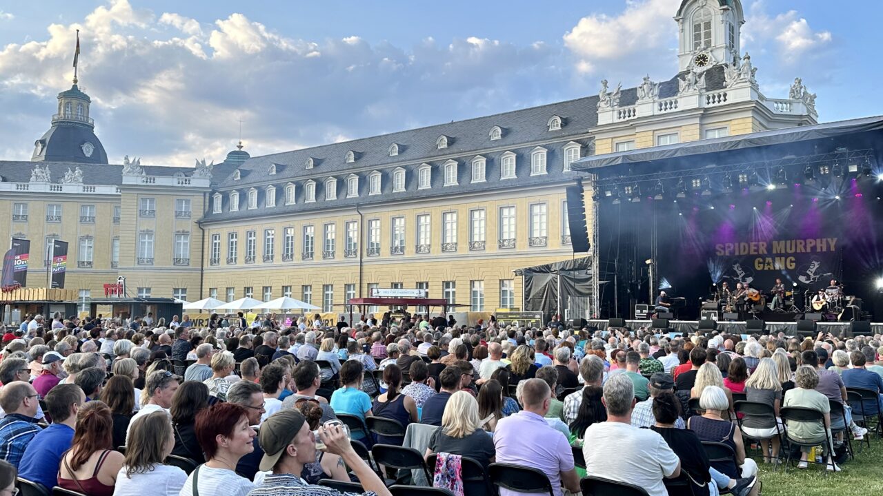 Am 16. Juni 2023, trat die „Spider Murphy Gang“ vor dem Schloss in Karlsruhe auf. Mehr zum 80er-Wochenende.