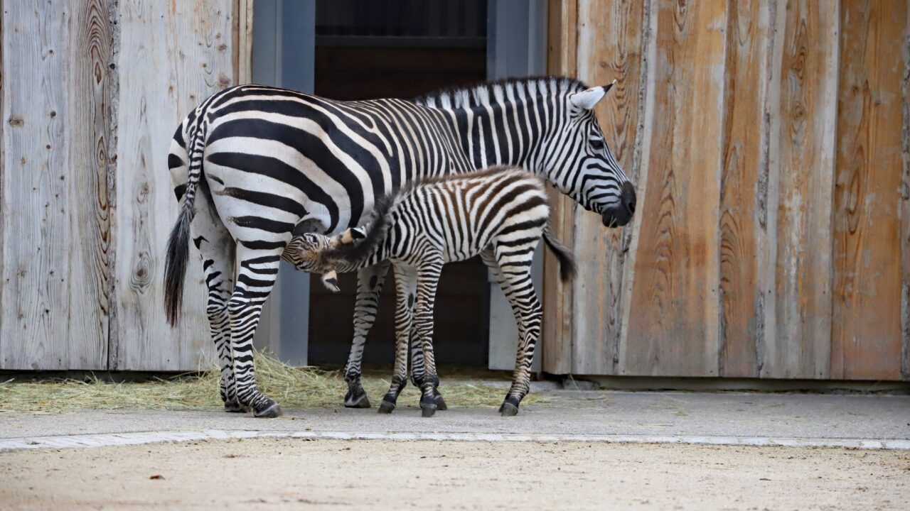 Welches Geschlecht der Zebra-Nachwuchs hat, sei noch nicht bekannt. Für die Zoogäste ist das Fohlen schon auf der Anlage zu sehen.