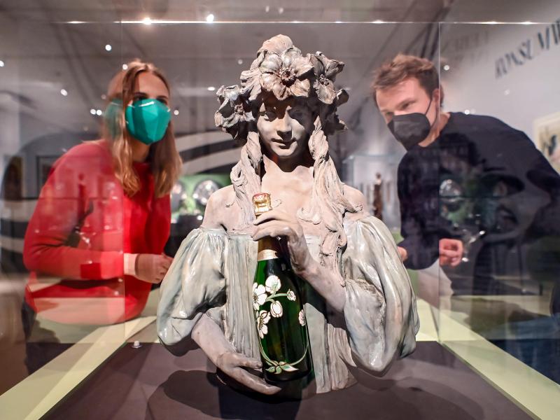 Bis zum 19. Juni nächsten Jahres präsentiert das Badische Landesmuseum in «Göttinnen des Jugendstils» rund 200 Exponate, darunter viele internationale Leihgaben. Zu sehen sind etwa Plakate von Alfons Mucha für Theatervorführungen und sein Werk «La Nature», das Gemälde «Schlangenkönigin» von Franz von Lenbach sowie Tischleuchten, Schmuck und Mode aus der Zeit der Jahrhundertwende.