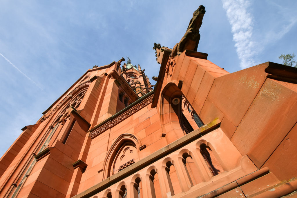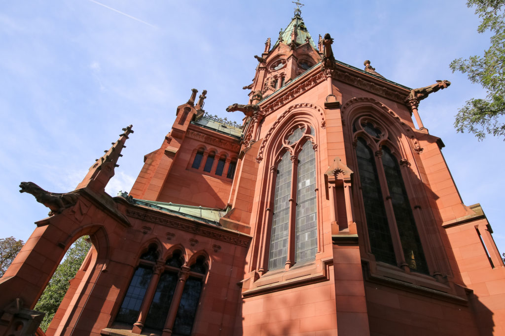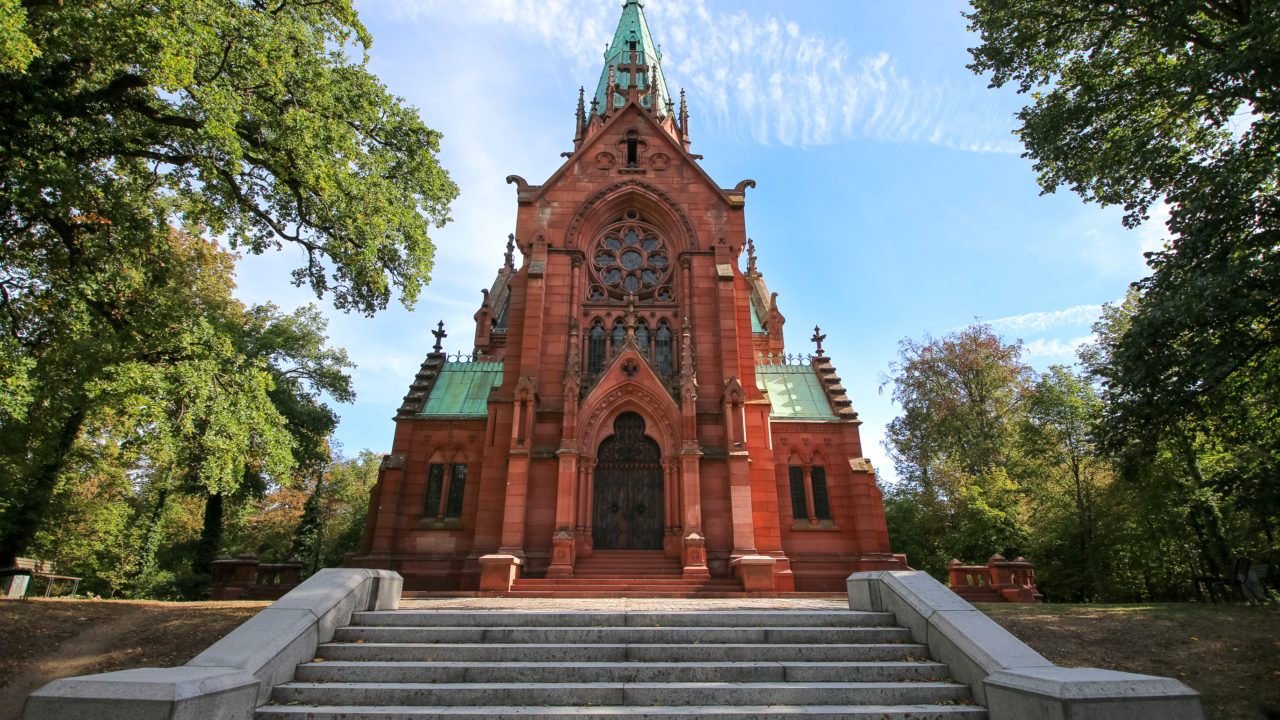 Wer vor der Großherzoglichen Grabkapelle steht, wird bereits beeindruckt sein, denn Figuren Fialen, Wasserspeier und Drachenfiguren des Karlsruher Bildhauers Wilhelm Sauer verzieren das Gebäude und tragen zur imposanten Wirkung der Kapelle bei. Doch das Innere ist ebenfalls atemberaubend und mit viel Liebe zum Detail gemacht. Begonnen im lichtdurchflutenten Innenraum der Oberkirche, welche durch übereinanderstehende Säulenreihen geprägt ist oder Engelsköpfe aus lichtgelbem Kalkstein, bis zu den breiten Treppenstufen, die in die Gruft hinunterführen.