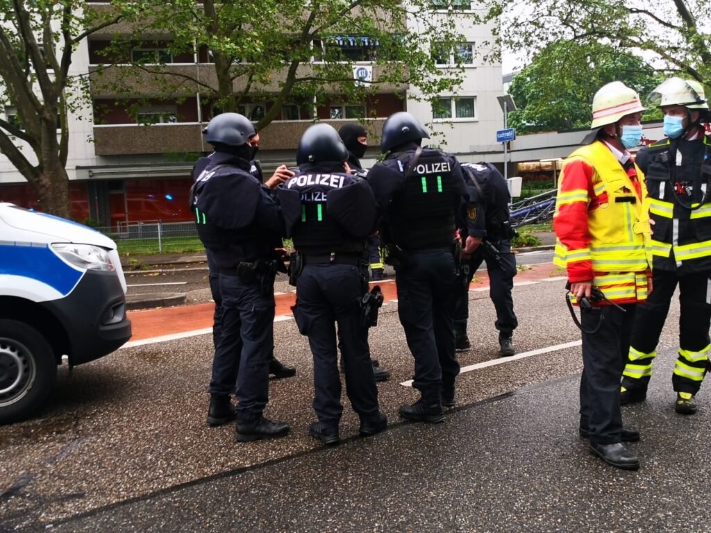 Es war nicht auszuschließen, dass der möglicherweise mit einer Pistole und einem Messer bewaffnete Bewohner einer der oberen Wohnungen sich selbst oder andere Menschen gefährden könnte, informiert die Polizei in einer Pressemeldung.