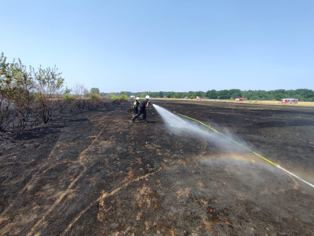 Ein weiteres Ausbreiten des Feuers konnte verhindert werden. Insgesamt ist eine Fläche von etwa zehn Hektar abgebrannt. Die Feuerwehren waren mit 20 Löschfahrzeugen und 80 Einsatzkräften vor Ort.