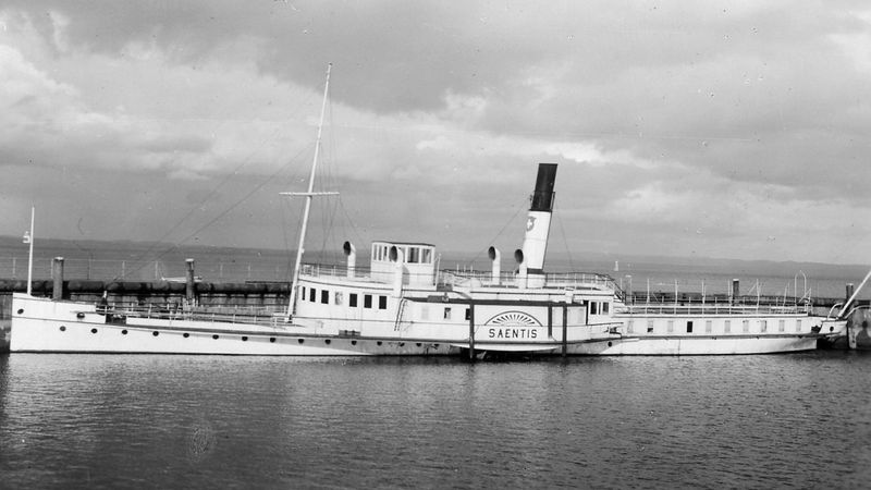 Das Wrack liegt in 210 Metern Tiefe. Die «Säntis» war im Mai 1933 nicht mehr fahrtauglich und in der Seemitte zwischen Romanshorn und Langenargen auf deutscher Seite versenkt worden. Eine Verschrottung wurde damals als zu teuer verworfen. Das 48 Meter lange Schiff war seit 1892 auf dem Bodensee unterwegs. Es konnte 400 Passagiere befördern.