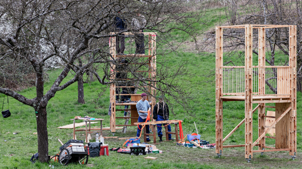 Im Rahmen des Projekts „Hochsitzcafé auf der Katzenwedelwiese“ haben Studierende der Fakultät für Architektur am Karlsruher Institut für Technologie (KIT) eine künstlerisch gestaltete Hochsitzgruppe entworfen und gebaut. Die Eröffnung ist am 21. April 2024.