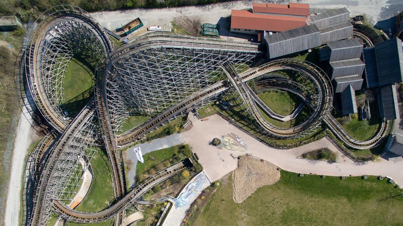 Die Züge der Holzachterbahn sehen aus wie Sägen und fahren teilweise mit 80 Kilometern pro Stunde auf den Schienen. Wie der Name schon verrät, besteht die Bahn größtenteils nur aus Holz. Seit 2008 steht sie im Erlebnispark.