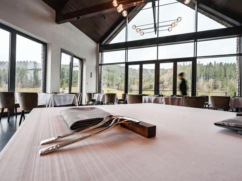 Die «Schwarzwaldstube», das gastronomische Aushängeschild der «Traube», präsentiert sich nun mit einer bis zum Giebel vollverglasten Stirnwand mit Blick auf den Schwarzwald. Mehr als 20 Jahre lang konnte sich das Edel-Restaurant mit der Michelin-Bestbewertung von drei Sternen schmücken. Nach dem Brand hatte es die Ehrung Anfang 2020 vorübergehend verloren. Doch die Gäste hielten auch im Provisorium die Treue: Fein gespeist wurde in einer Übergangslösung auf dem Dach des Parkhauses – Torsten Michel eroberte schon im vergangenen Jahr für die «Schwarzwaldstube» die drei Sterne zurück.