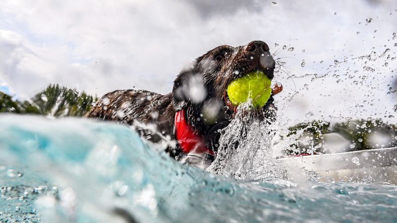 Badespaß für Vierbeiner: Das Karlsruher Rheinstrandbad hat am Sonntag seine Tore zum Hunde-Schwimmen geöffnet.