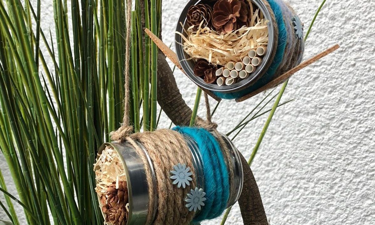 Nachhaltigkeit bedeutet auch, Sachen wiederzuverwenden, die sonst im Abfall landen würden. So kann zum Beispiel aus Konservendosen ein schönes neues Zuhause für Insekten gebastelt werden. Das ist nicht nur doppelt nachhaltig, sondern sieht auch noch richtig gut aus!