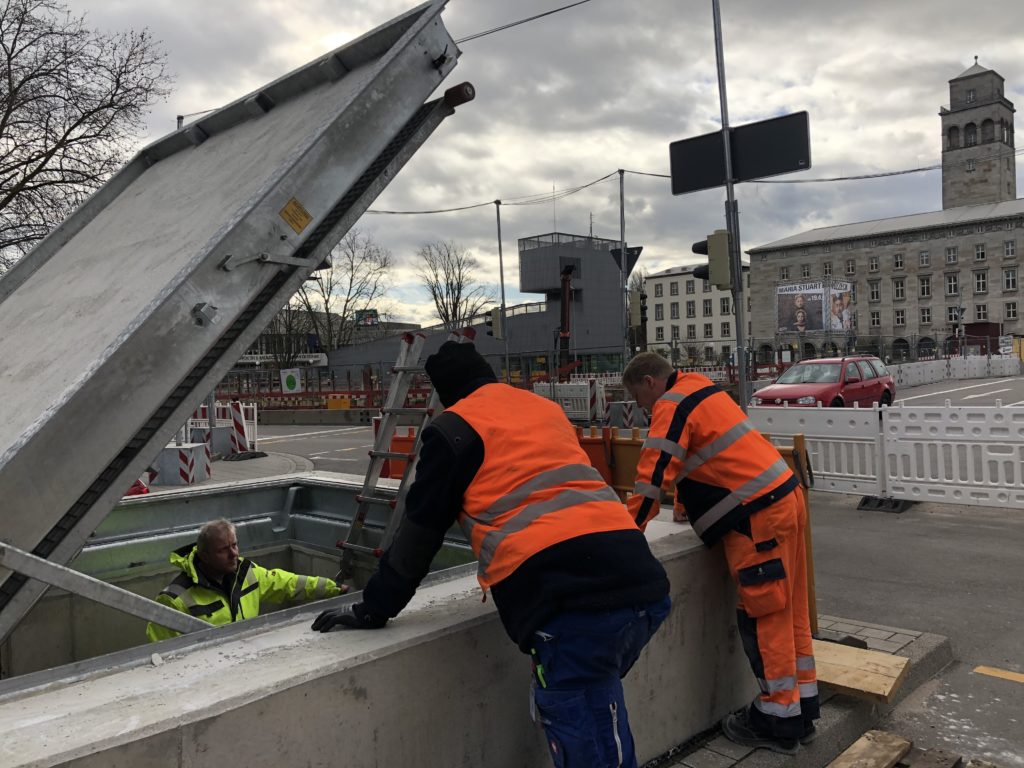 Ab Montag, den 16. März 2020 kommt hier ein Großbohrgerät zum Einsatz. Ab Mittwoch, den 1. April 2020 wird dann der das Karlstor von Norden nach Süden querende Autoverkehr – er wird über den Wender Höhe Hirschstraße umgeleitet – und ab Montag, den 20. April 2020 die Stadtbahn- und Straßenbahnverbindungen über das Karlstor unterbrochen.