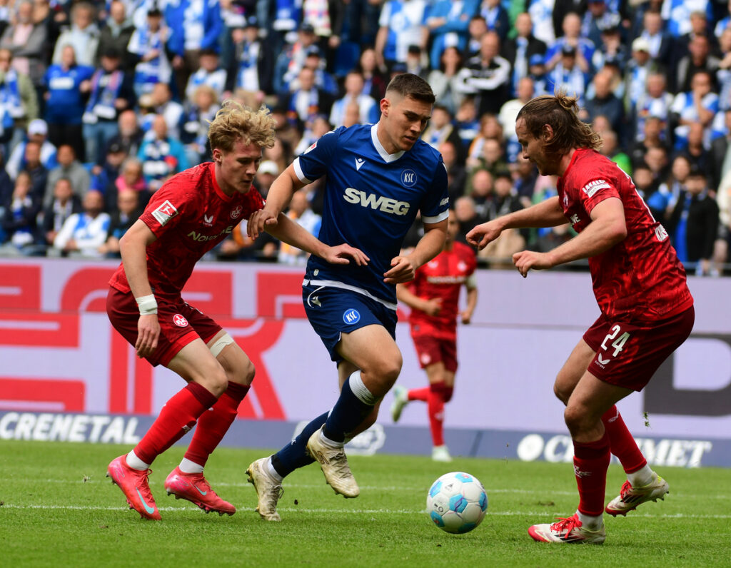 Marcel Beifus, KSC-Innenverteidiger: „Wir hatten viele Chancen, die wir teilweise liegen gelassen haben. Regensburg hatte zwei Standards, die sie reinmachen und im Endeffekt geht das Spiel dann 2:2 aus und genauso habe ich das Spiel empfunden.“