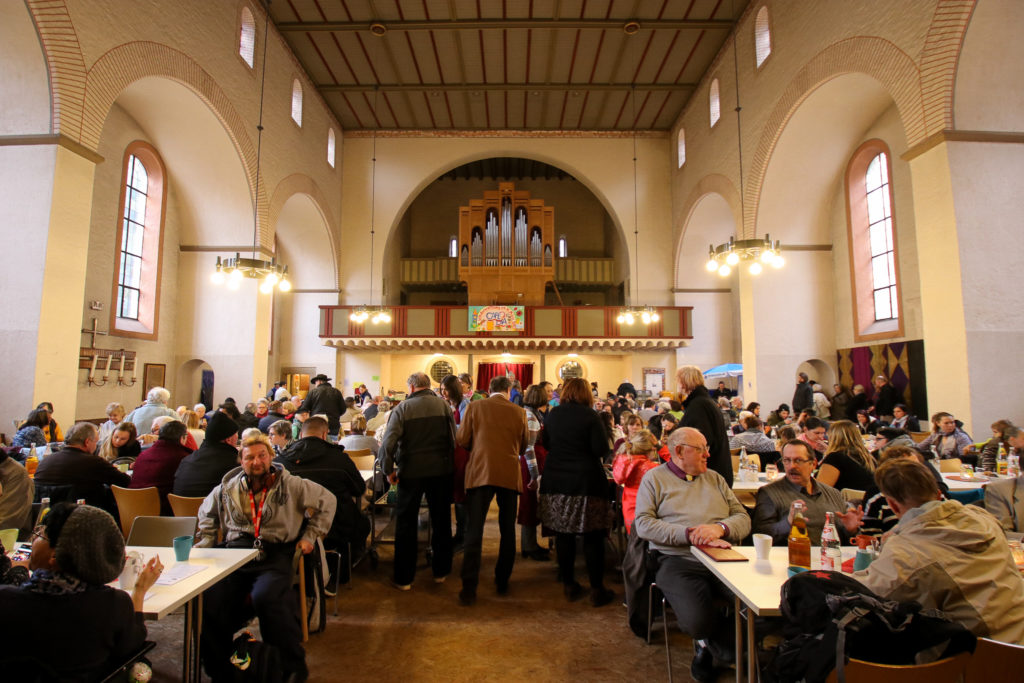Die Karlsruher Johanniskirche verwandelt sich alljährlich in eine Vesperkirche. Auch im Januar 2020 konnten sich in der Kirche am Werderplatz Menschen mit unterschiedlichen sozialen Hintergründen treffen, um zusammen zu essen und gemeinsam Zeit zu verbringen.