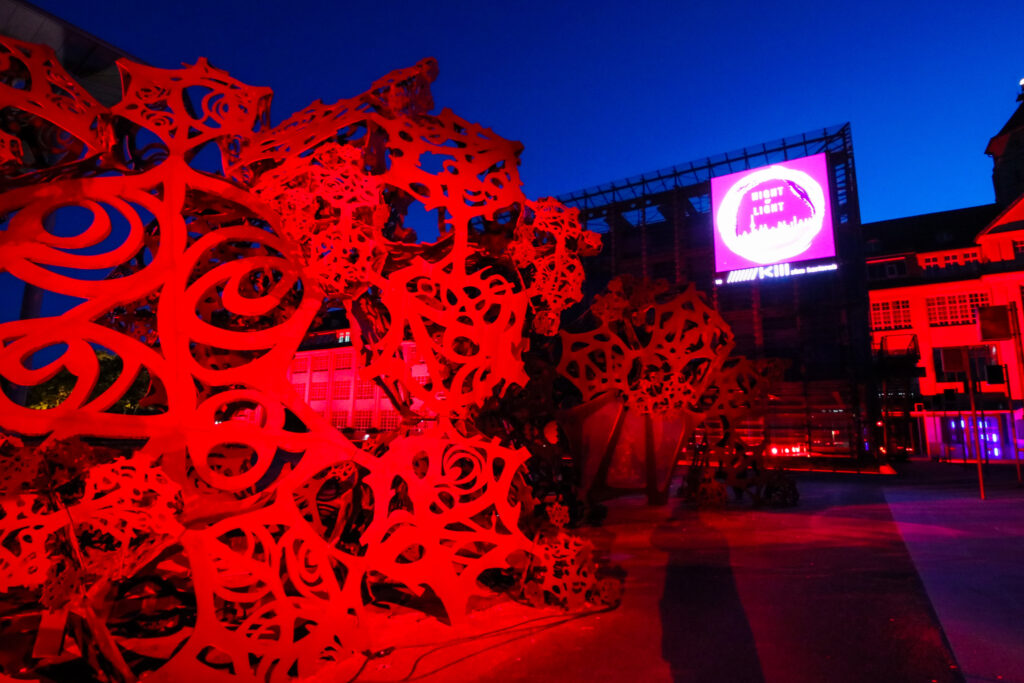 Die Veranstaltungswirtschaft ist eines der größten Opfer der Corona-Krise. Um auf diese Situation aufmerksam zu machen, wurden in der Night of Light vom 22. Juni auf 23. Juni 2020 die Messe-, Kultur- und Kongressgebäude in blutrotem Licht illuminiert.