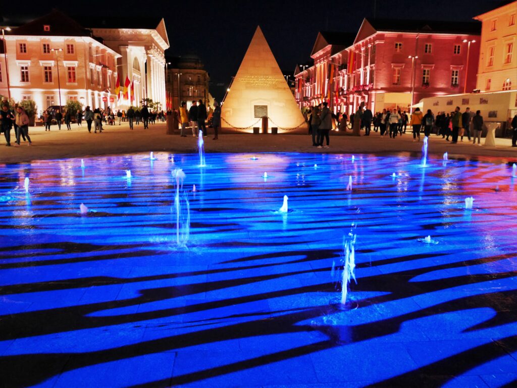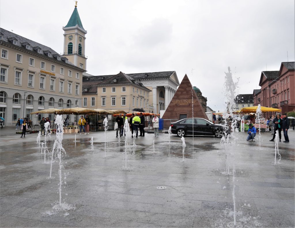 Im Juni 2020 wurden die Wasserspiele auf dem Marktplatz in Karlsruhe eröffnet. 31 Düsen nördlich der Pyramide sprudelten während des Sommers im Herzen der Fächerstadt.