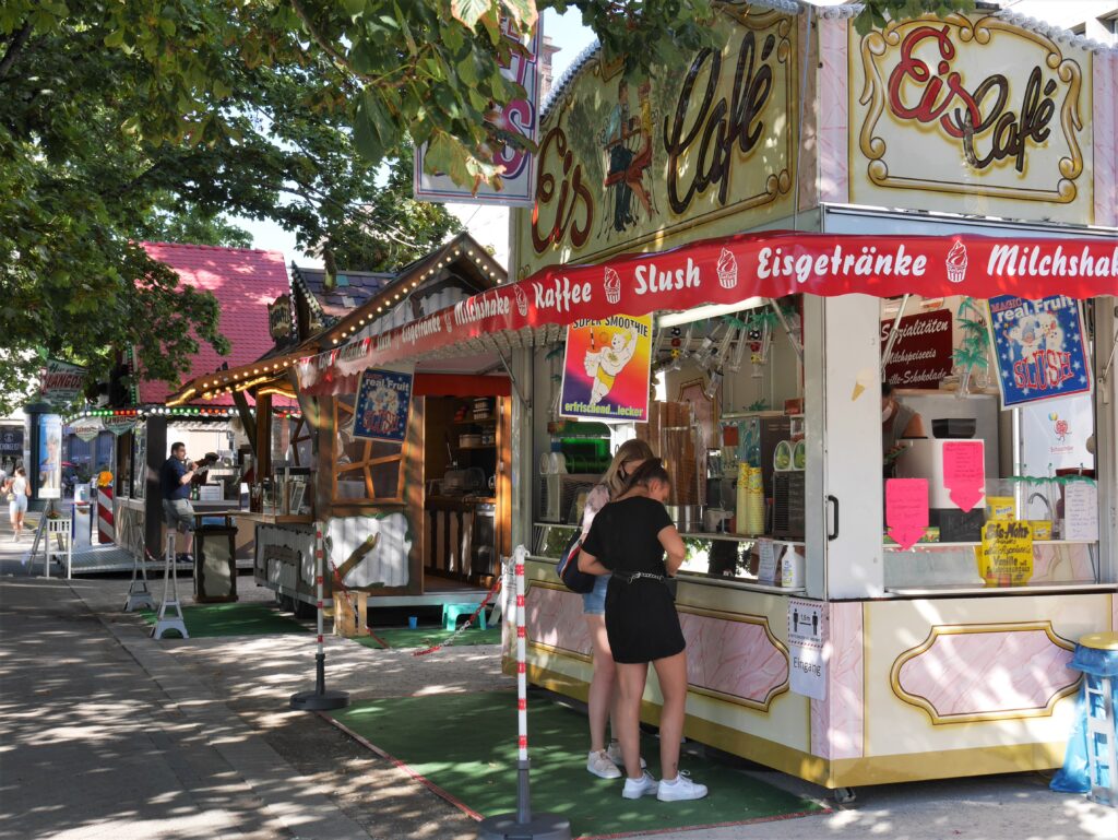 Es hatte etwas von Christkindlesmarkt im Hochsommer: Die Schausteller durften im Sommer ihre Buden aufgrund der Corona-Krise in der Karlsruher Innenstadt aufstellen! Glühwein gab es allerdings keinen – dafür viele Leckereien wie Eis oder Langos – aber auch Spiel und Spaß für die Kinder.