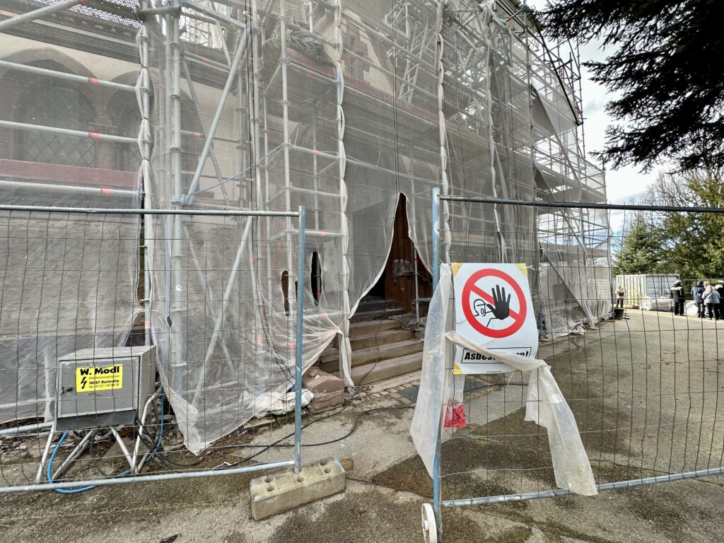 In der 1902 eingeweihten Kapelle wurden bereits 2019 Risse im Gewölbe bemerkt. Bei weiteren Untersuchungen wurde dann schnell klar, dass am Gebäude noch viel mehr kaputt ist. 2023 wurde daher mit umfangreichen Arbeiten begonnen.