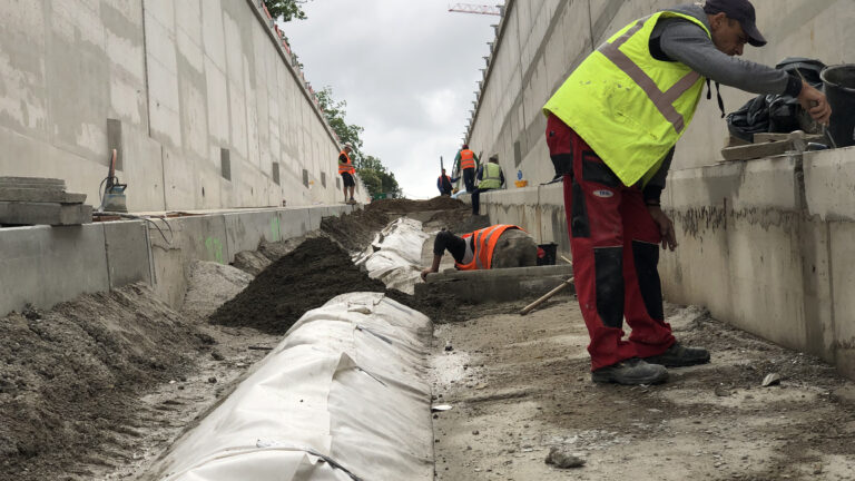Der Umbau der Kriegsstraße mit einer neuen Gleistrasse und einem Autotunnel hat mit den Arbeiten an den Gleisen und Fahrbahnen im Bereich des Karlstors ein wichtiges Zwischenziel erreicht, informiert Karlsruher Schieneninfrastruktur-Gesellschaft mbH.