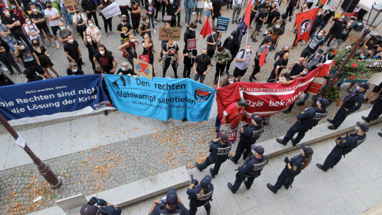 Im Zuge einer Wahlkampfveranstaltung der AfD mit einer Gegenversammlung kam es am Donnerstag, 09. September 2021, beim Schlossplatz in Durlach zu Auseinandersetzungen. Die Polizei musste teils unter Einsatz der Hiebwaffe einschreiten, wird informiert.