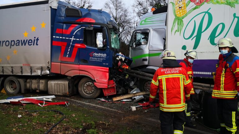 Am Dienstag, 16. Februar 2021, gegen 10:30 Uhr kam es auf der Karlsruher Südtangente zu einem schweren Verkehrsunfall. Nach ersten Informationen sind zwei Lastkraftwagen (Lkw) frontal zusammengestoßen. Die Südtangente wurde in beide Richtungen gesperrt.