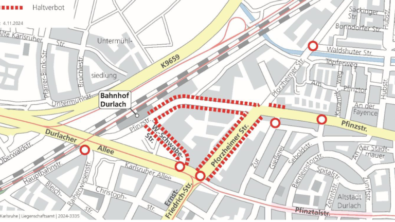 Vor dem Bahnhof Durlach und den angrenzenden Straßen wurden beim Ordnungs- und Bürgeramt für Samstag, 09. November 2024, mehrere Versammlungen mit insgesamt rund 2.000 Teilnehmenden angemeldet. Es kommt zu Straßensperrungen und Verkehrsbehinderungen.
