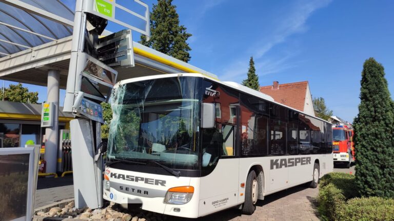 Medizinischer Notfall in Graben-Neudorf: Bus-Fahrer kracht in Tankstellenanzeige