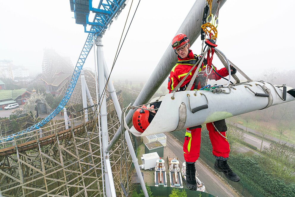 Zudem müssen jährlich nochmals 72 Übungsstunden geleistet werden, um die Qualifikation als Höhenretterin oder Höhenretter zu erhalten. Dazu zählt auch die Übung im Europa-Park – diese wird aber wohl nicht die letzte Übung des Jahres bleiben.