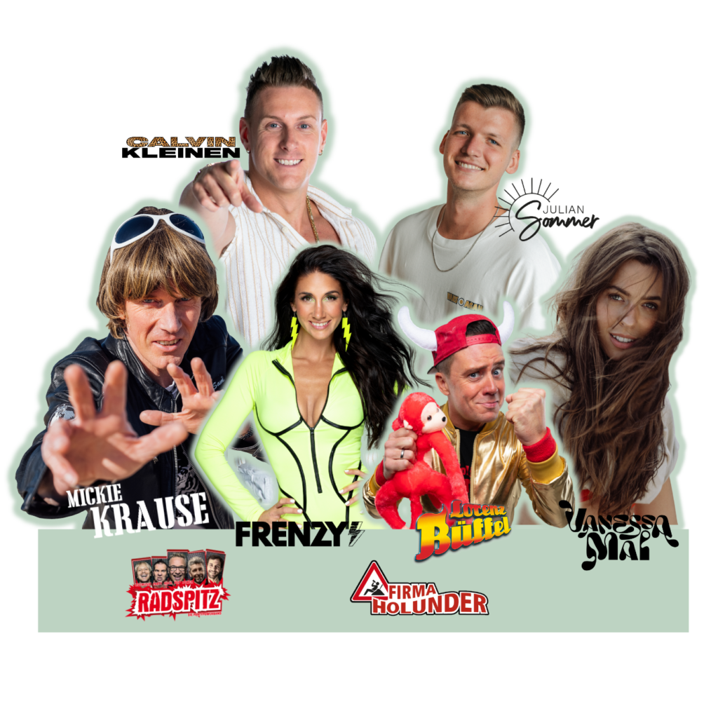 Vanessa Mai, Mickie Krause, Lorenz Büffel, Julian Sommer, Volxxbeat, Firma Holunder und Radspitz.