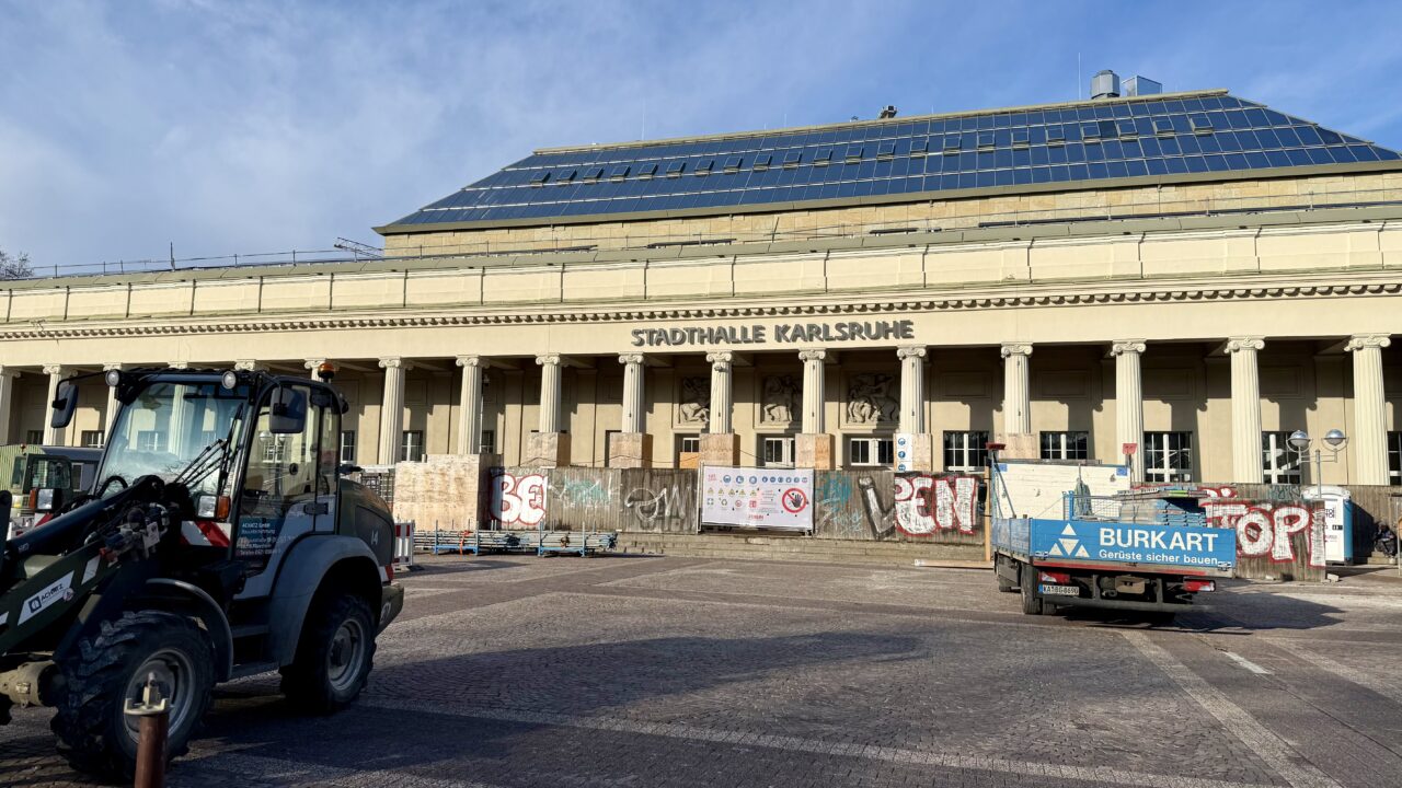 Wie die Stadt Karlsruhe mitteilt, kommen die Arbeiten in der Stadthalle am Festplatz derzeit zügig voran. Es seien deutliche Fortschritte erkennbar. Weiterhin werden demnach auf den genehmigungstechnischen Abschluss im ersten Quartal 2026 hingearbeitet.