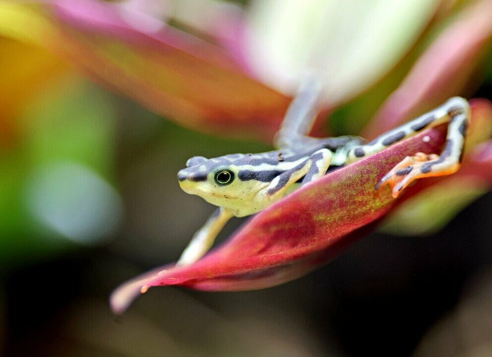 13 kleine Frösche aus zwei unterschiedlichen Arten sind im Zoo Karlsruhe eingetroffen. „Beide Arten sind hochbedroht. Wir werden uns für deren Erhalt einsetzen“, betont Dr. Lukas Reese, Zootierarzt und Kurator für Amphibien, Reptilien und das Exotenhaus.