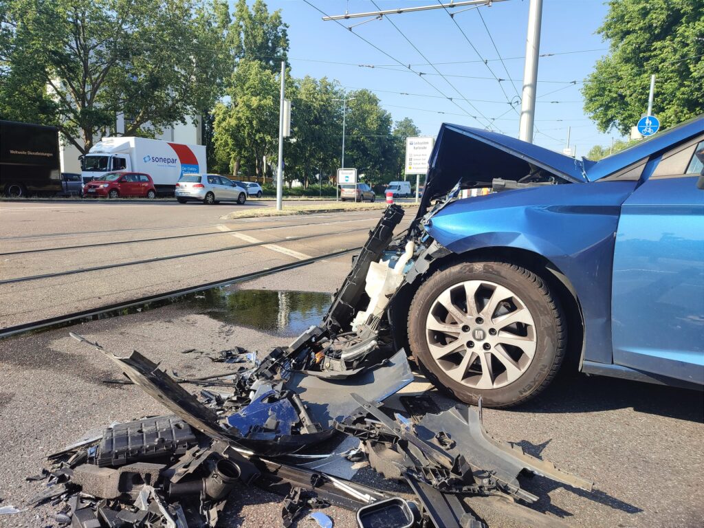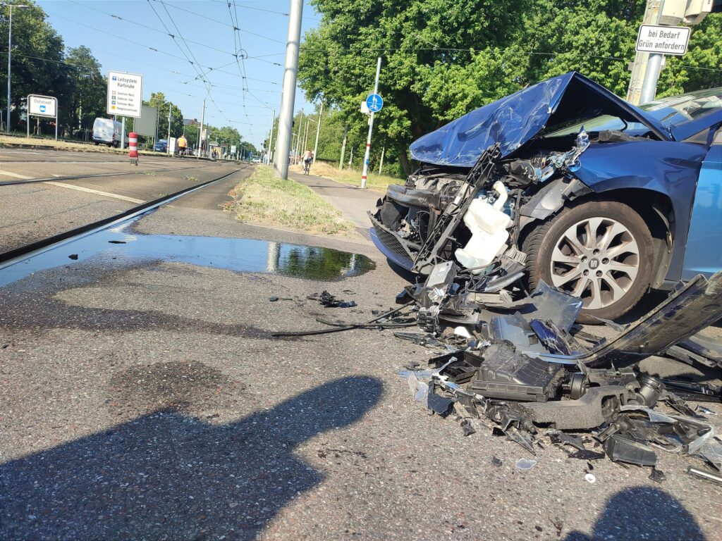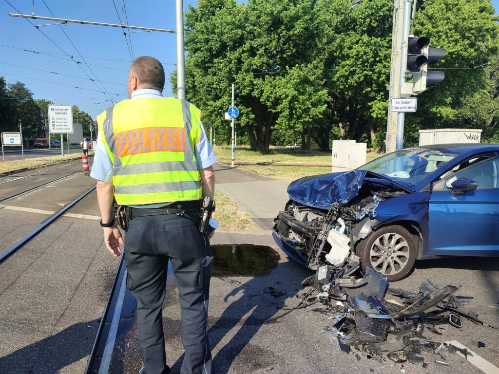 Polizei Karlsruhe Kollision zwischen Auto & Straßenbahn am Karlsruher Hirtenweg