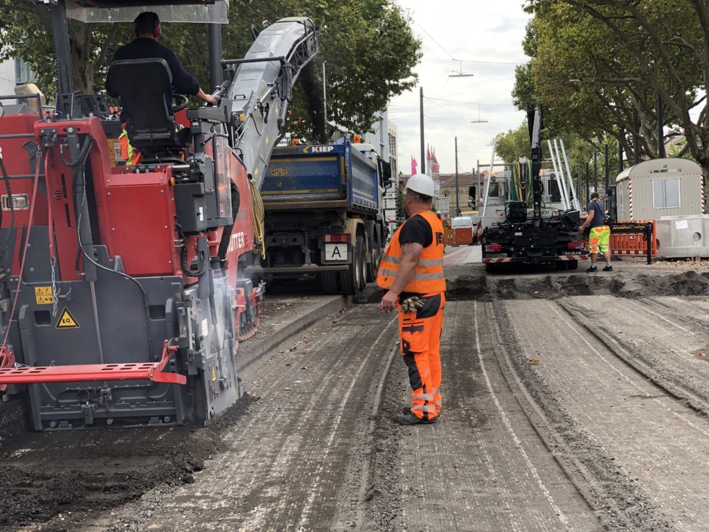 Der Straßenbau läuft parallel zu den Gleisarbeiten – hier entsteht bald die endgültige Oberfläche. | Quelle: Kasig