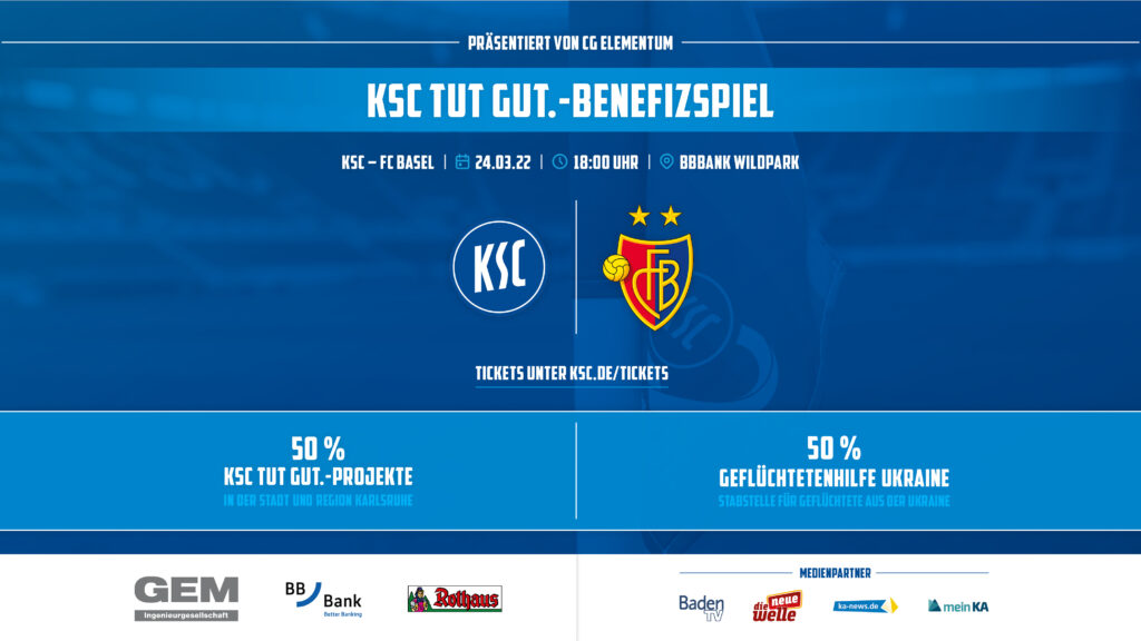 Der Karlsruher SC empfängt am Donnerstag, 24. März 2022, den FC Basel zum „KSC TUT GUT.-Benefizspiel präsentiert von CG Elementum“ im BBBank Wildpark.