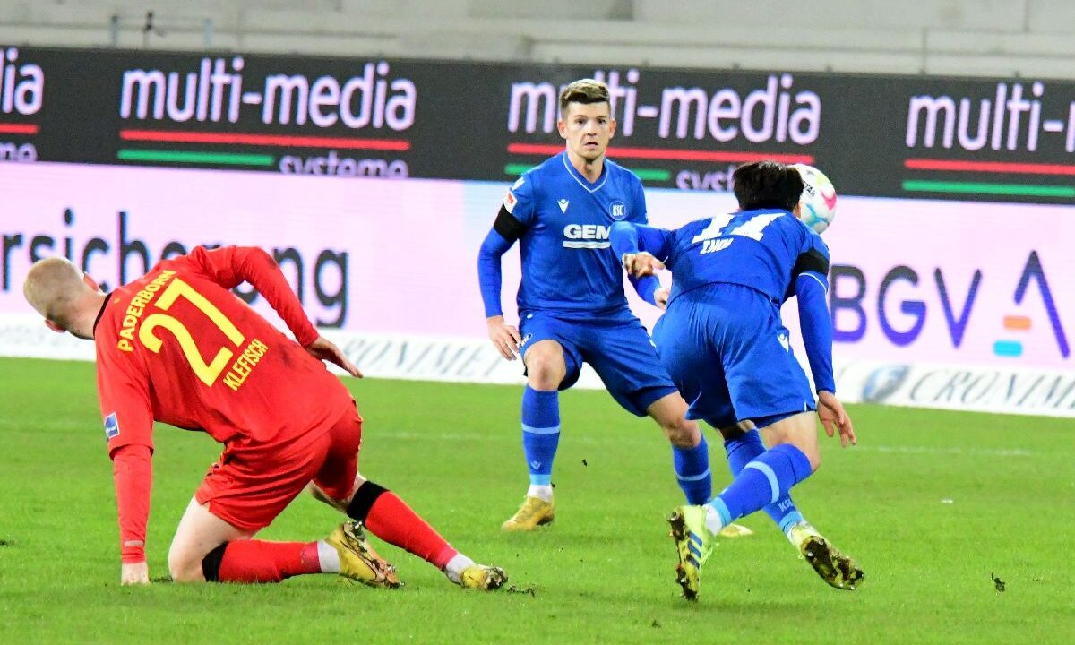 Dabei waren die Karlsruher den Paderbornern lange Zeit ebenbürtig gewesen, auch wenn sich die Gäste mehr hochkarätige Torchancen erspielten. Zu Beginn der beiden Spielhälften stellten sogar jeweils die Gastgeber das bessere Team, die besten Einschussmöglichkeiten vergaben jedoch Fabian Schleusener (15.) und Marvin Wanitzek (74.). Doch als es in der Schlussphase so wirkte, als ob beide Mannschaften mit einem Unentschieden zufrieden wären, erzielte Leipertz mit einem Schuss ins lange Eck doch noch das Siegtor für den SCP.
