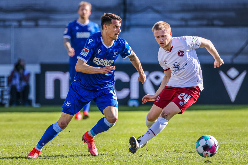 Zweikampf zwischen Philip Heise (KSC 16) und Mats Möller Dähli (Nürnberg 24) | Quelle: TMC-Fotografie.de | Tim Carmele
