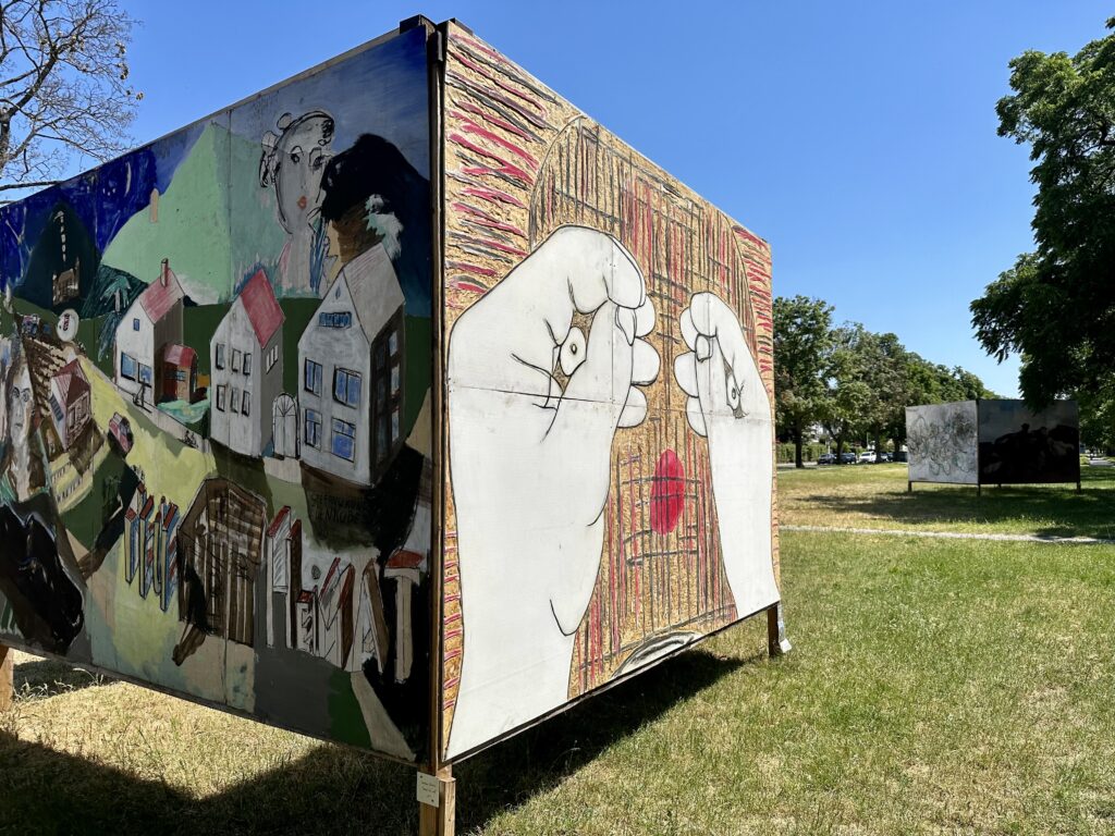 Wer in der Karlsruher Weststadt in der Fanny-Hensel-Anlage nahe der Lukaskirche unterwegs ist, kann sie sicherlich nicht übersehen: Die vielen riesigen Kunstwerke auf Plakatwänden! Noch zum 30. Juli 2023, ist die Open-Air-Ausstellung zu besuchen.