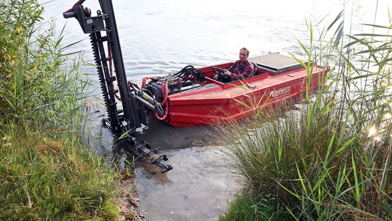 Nachrichten Mähboot unterwegs: So wird der Baggersee in Linkenheim-Hochstetten sauber