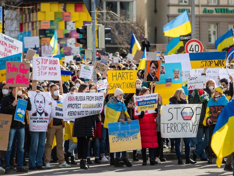 Auf dem Wilhelmsplatz in Stuttgart versammelten sich laut Polizei mehr als Tausend Menschen. Angemeldet gewesen seien rund 300. Die Teilnehmenden trugen Plakate mit Aufschriften wie «Stop Putin» und «Deutschland, stop die russische Propaganda». Die Menge skandierte «Deutschland wach auf» und «Putin weg». Es waren viele Ukraine-Flaggen zu sehen. Die Aktion verlief friedlich.