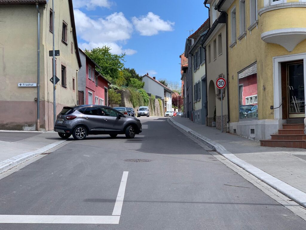 „Wir liegen gut im Zeitplan. Am Freitag, 21. Mai 2021 wollen wir die letzten Bauzäune entfernen und die Straße freigeben“, berichtet Bürgermeister Eric Bänziger. Gerd Weinbrecht, Leiter Tiefbau bei der Gemeinde Weingarten ergänzt: „In den kommenden Tagen geht es an die Fertigstellung der Asphaltdecke bis zur Hebelstraße. Die Randsteine sitzen schon, die Gehweg-Poller müssen noch gesetzt werden. Zum Teil müssen noch Pflasterflächen fertiggestellt werden.“