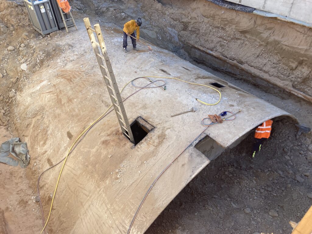 Sie steckte fast sieben Jahre unter der Erde fest und wird nun freigelegt: Nach einer Havarie im Jahr 2017 in einem Tunnel unterhalb der Rheintalbahn sind erste Teile der damals verschütteten und dann einbetonierten Tunnelbohrmaschine wieder zum Vorschein gekommen. Mit der Freilegung und Demontage des Tunnelbohrers namens Wilhelmine werde eine wichtige Voraussetzung für den Weiterbau an der Oströhre des Tunnels Rastatt geschaffen, wie die Bahn am Mittwoch bei einem Vorort-Termin mitteilte. Das Schneidrad ist bereits zu sehen, das nun mit Schneidbrennern zerlegt wird. Der Rest von «Wilhelmine» wird in den nächsten Monaten ausgegraben und gleichzeitig Zug um Zug abgebaut. Wieviel die seit vielen Monaten vorbereitete Bergung kostet, ist noch unklar.
