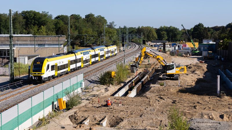 ARCHIV – Ein Zug fährt nahe der Havariestelle der Tunnelbohrmaschine Wilhelmine. Foto: Philipp von Ditfurth/dpa/Archivbild