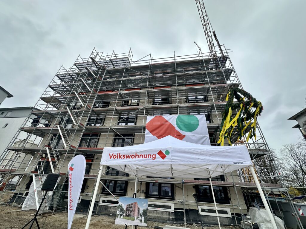 News aus der Fächerstadt Neuer Wohnraum am „Alten Flugplatz“: Volkswohnung feiert besonderes Richtfest