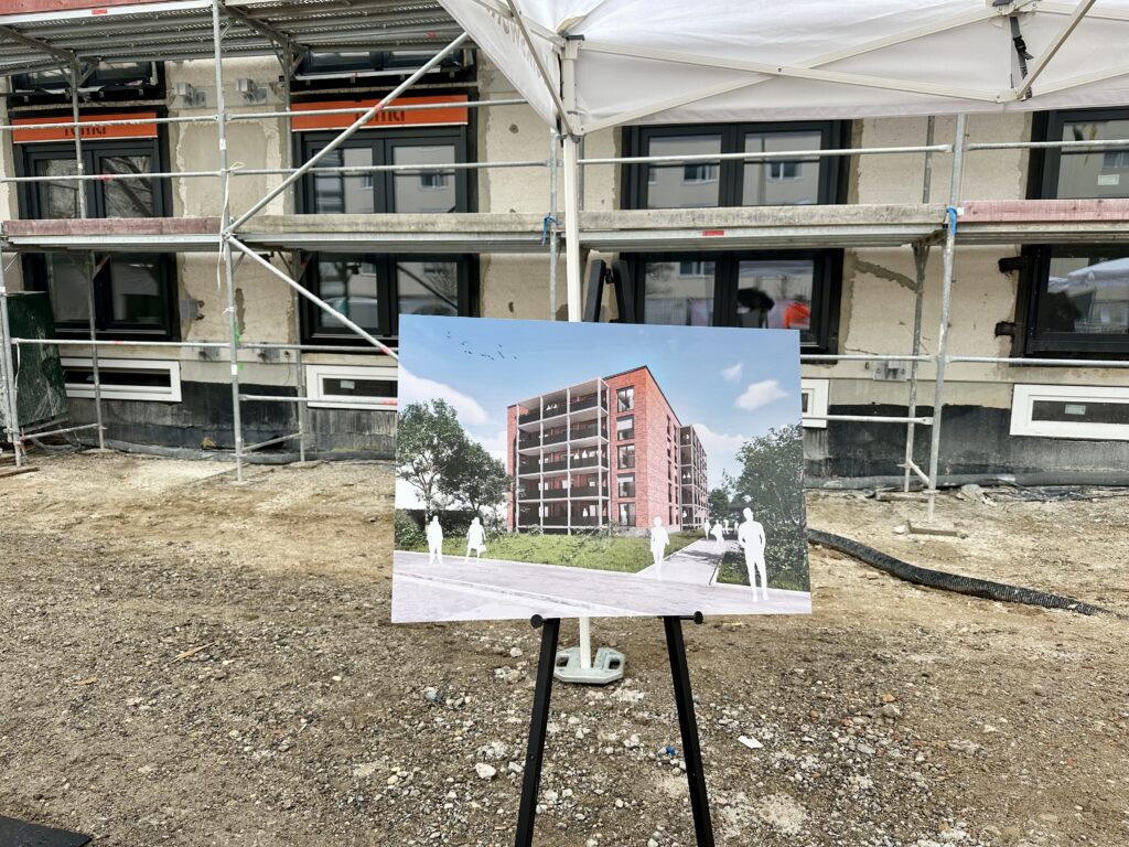 Die städtische Wohnungsbaugesellschaft modernisiert das Gebäude in der Josef-Schofer-Straße, welches aus dem Jahr 1970 stammt, grundlegend und schafft neue Wohnungen durch die Aktivierung von Dachgeschossen.