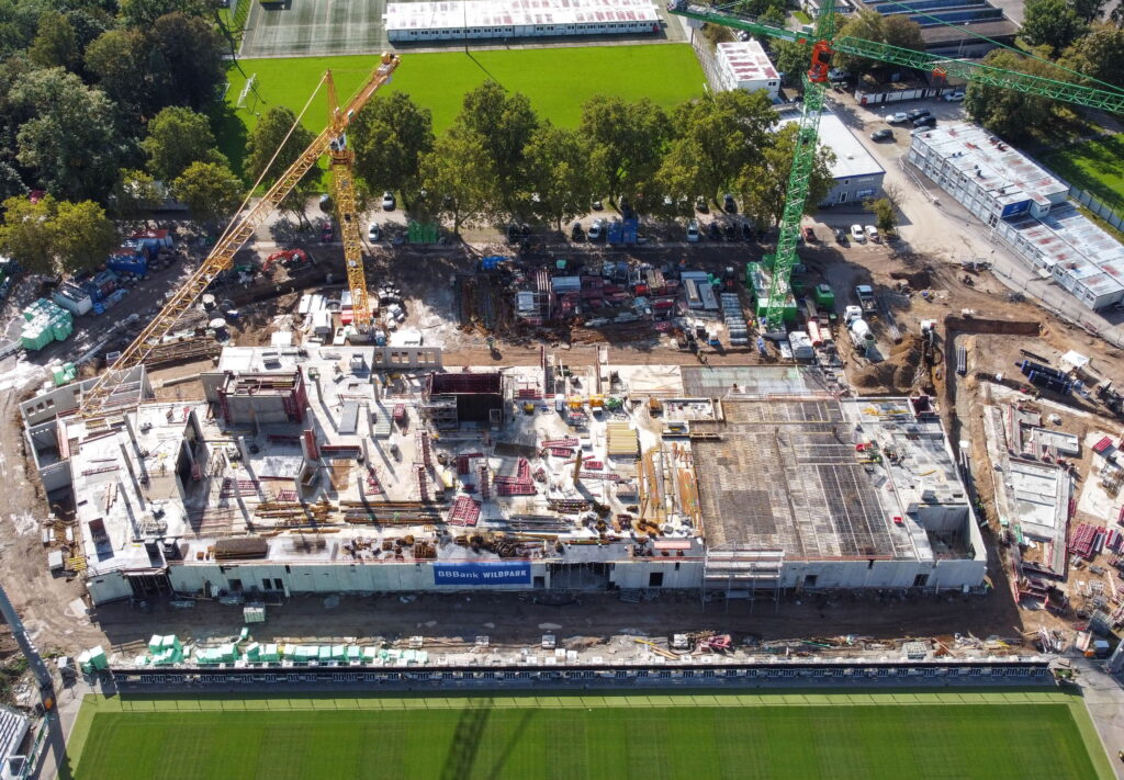 Hier entstehen nun in den nächsten Monaten über 5.000 Sitzplätze, die zum Teil für die Anhänger der gastierenden Vereine vorgesehen sind. Der Großteil ist allerdings den heimischen Fans vorbehalten. Parallel dazu steht weiterhin der Bau der neuen Westtribüne (ehemals Haupttribüne) im Mittelpunkt: Das Gebäude spielt eine zentrale Rolle für den KSC im Wildpark.