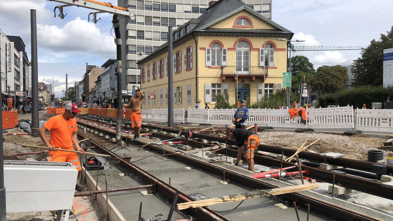 Die Gleise werden über das Ettlinger Tor verlegt
