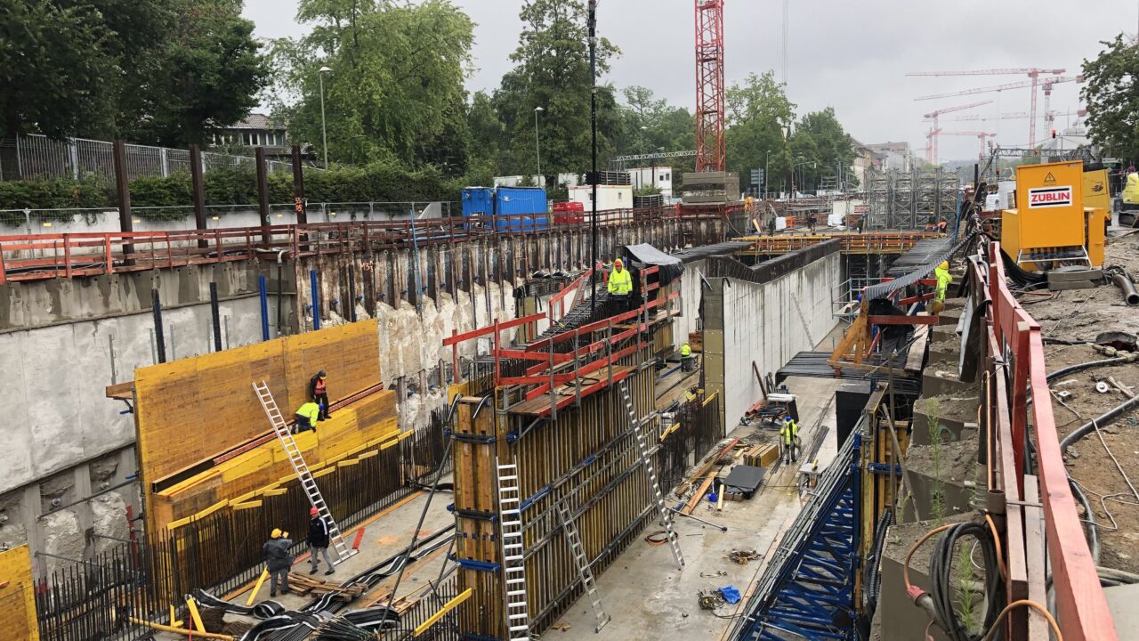 Der Umbau der Kriegsstraße mit einer neuen oberirdischen Gleistrasse und einem darunter liegenden Autotunnel weist inzwischen noch zwei Lücken auf, die allerdings täglich kleiner werden: Östlich des Ettlinger Tors in den Baufeldern O 5, O 4 und O 3 entsteht die Tunnelsohle in Abschnitten, ebenso die Tunnelaußenwände und die Mittelwand, die die beiden Röhren mit rechteckigem Querschnitt voneinander trennt, erklärt die Karlsruher Schieneninfrastruktur-Gesellschaft (KASIG) in einer Pressemitteilung.